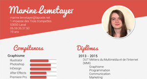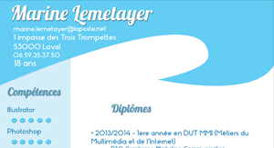 Etudiante de 20 ans, je suis en deuxième année du DUT MMI (Métiers du Multimédia et de l'Internet) à Laval. Adorant le mulimédia depuis petite, j'ai décidé de suivre cette formation polyvalente me permettant de pouvoir être présente dans différents domaines qui touchent au multimédia.
